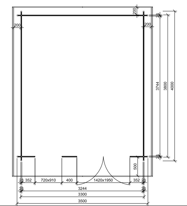 - Grīda no 19 mm dēļiem, grīdlīstes;