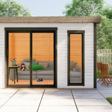 Dārza māja, dārza birojs, vasarnīca, lapene, oranžērija – mūsu jaunā moderno mājiņu sērija ar visplašāko pielietojumu ! Šī gaisīgā telpa ar atbīdāmām stikla sienām ļaus baudīt saules siltumu un vasaras burvīgās smaržas nepieceļoties no sava iemīļotā atpūtas krēsla, vai dīvāna. Tomēr, vēsākos laika apstākļos durvis ir ērti aizbīdāmas, norobežojot no vējiem un aukstuma, bet saglabājot brīnišķīgos skatus uz Jūsu dārzu un apārtni!