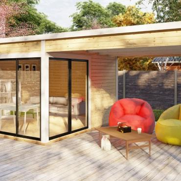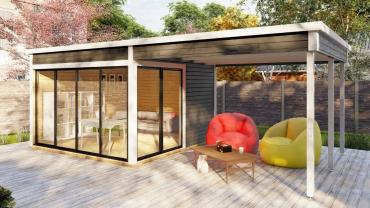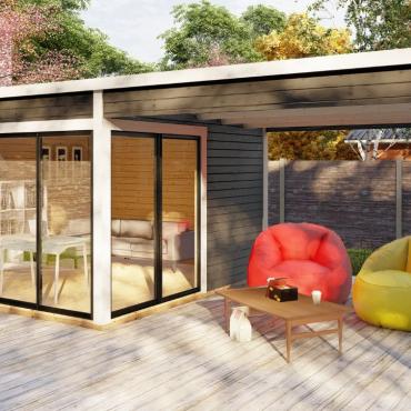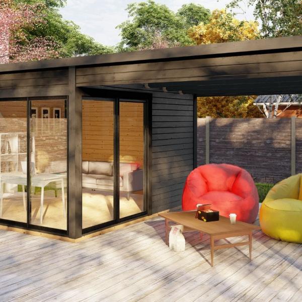 Dārza māja, dārza birojs, vasarnīca, lapene, oranžērija – mūsu jaunā moderno mājiņu sērija ar visplašāko pielietojumu ! Šī gaisīgā telpa ar atbīdāmām stikla sienām ļaus baudīt saules siltumu un vasaras burvīgās smaržas nepieceļoties no sava iemīļotā atpūtas krēsla, vai dīvāna. Tomēr, vēsākos laika apstākļos durvis ir ērti aizbīdāmas, norobežojot no vējiem un aukstuma, bet saglabājot brīnišķīgos skatus uz Jūsu dārzu un apārtni!