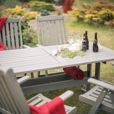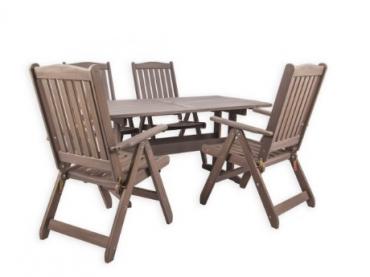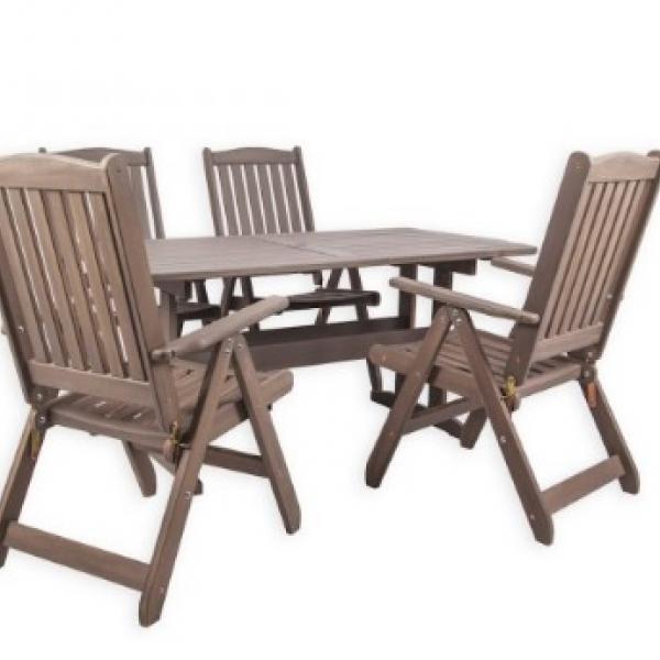 - Galds + 4 salokāmi krēsli ar atzveltni un roku balstiem.