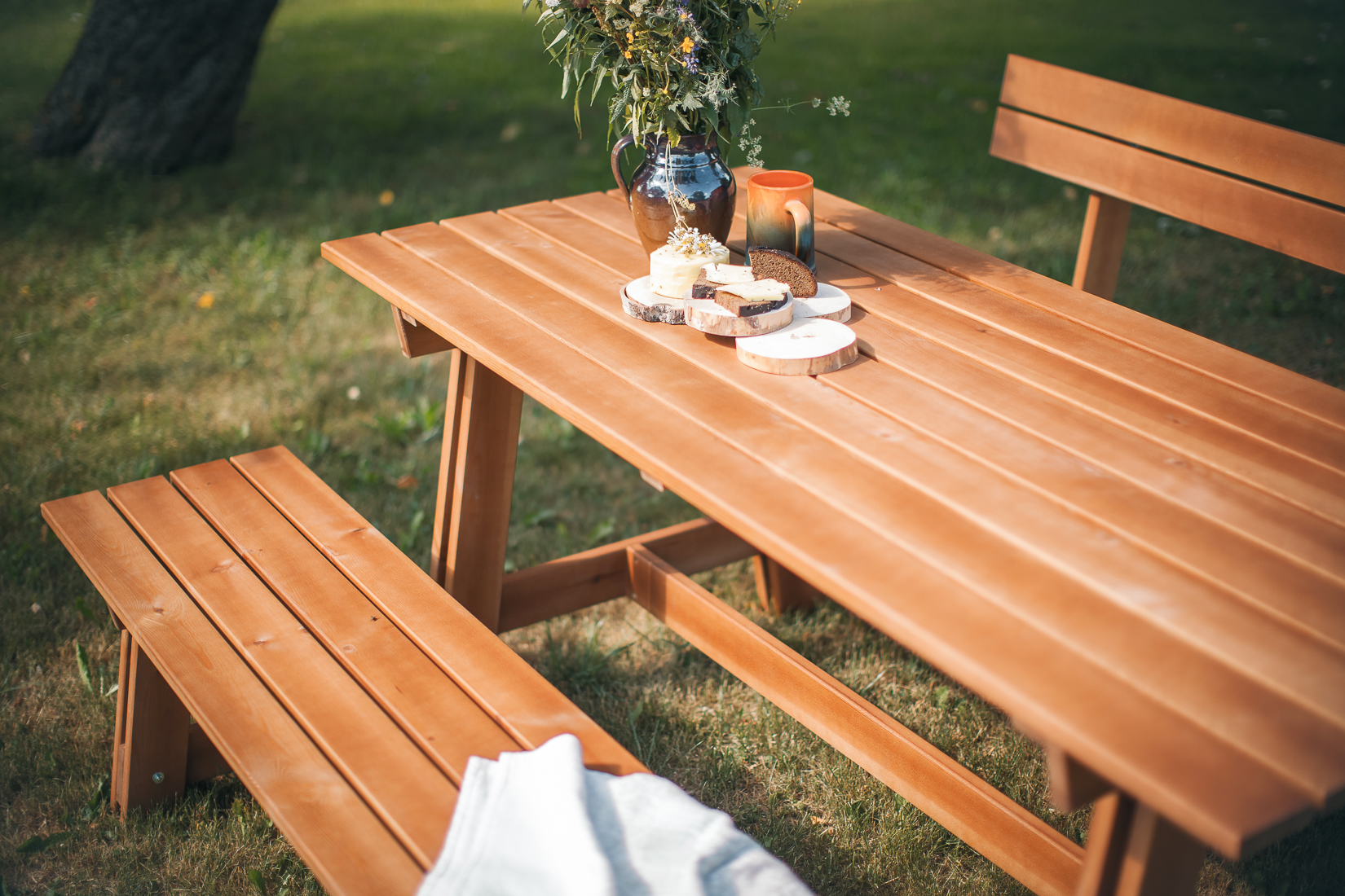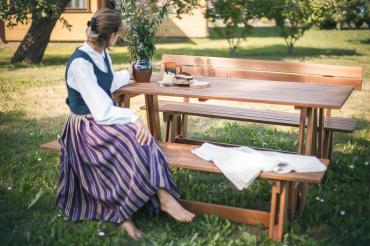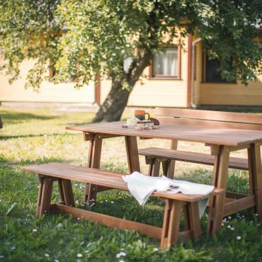 - Materiāls – priedes masīvs – tas ir dzīvs un silts materiāls, kas lieliski iederas jebkurā dārza zonā;