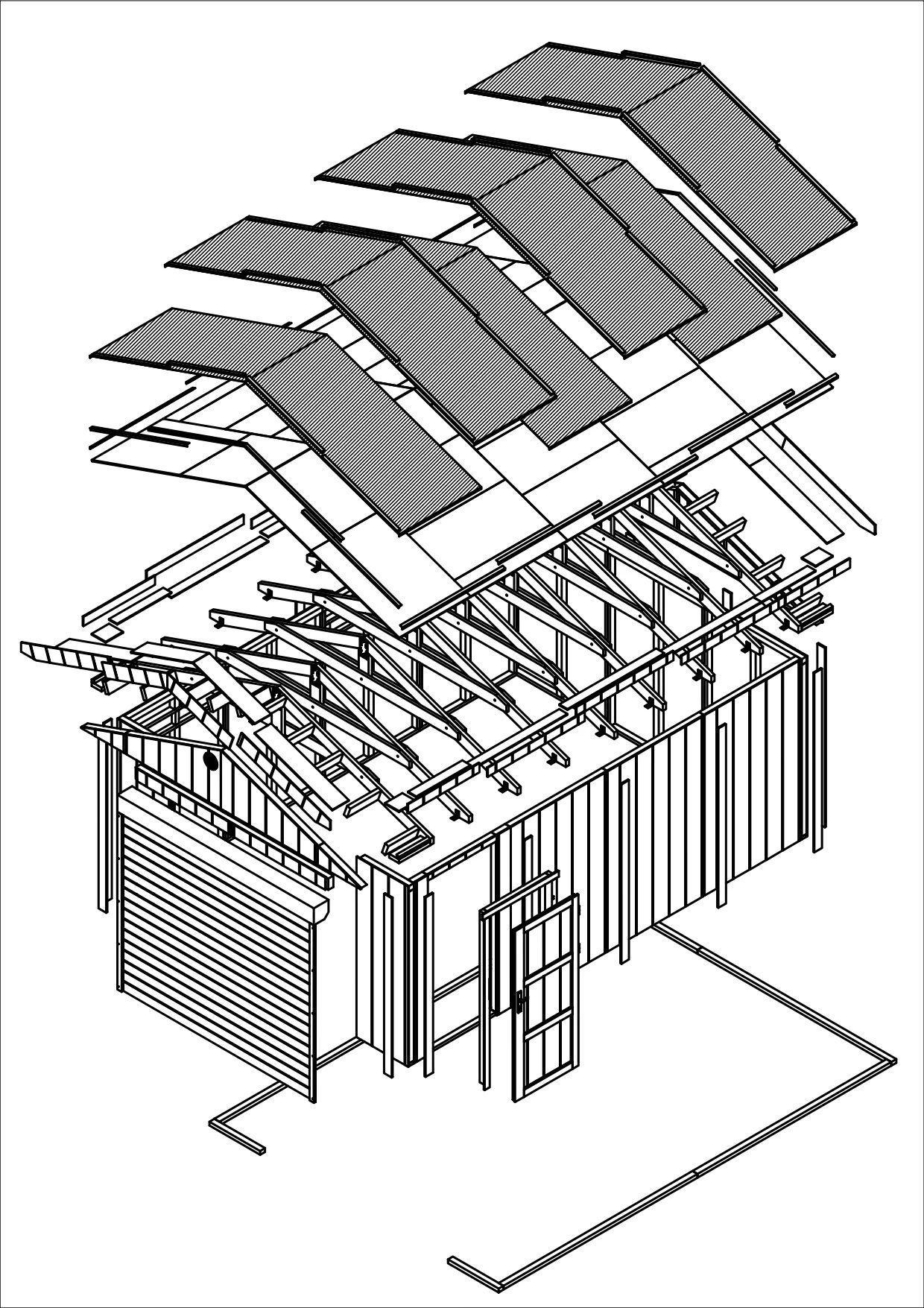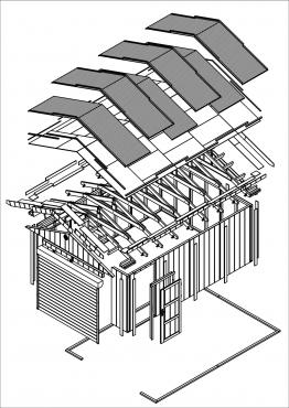 - Jumta konstrukcija no 40x120mm spārēm, kas pārklātas ar 12mm mitrumizturīga OSB-3 loksnēm
