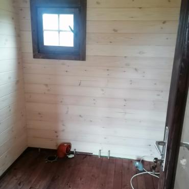 - Grīda no 19 mm spundētiem dēļiem, grīdlīstes;