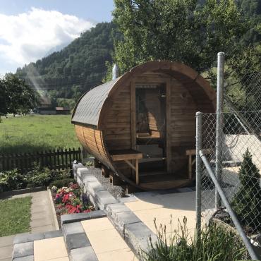 - Divi rūdītā stikla pakešu logi mucas priekšējā sienā vai aizmugures sienā;