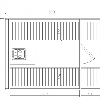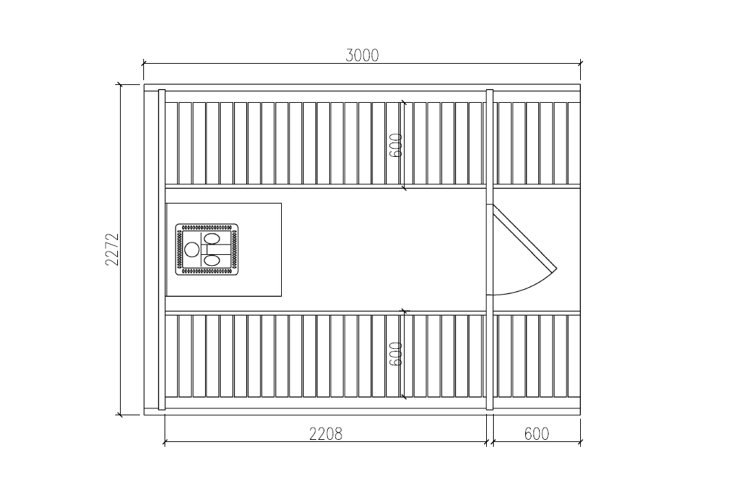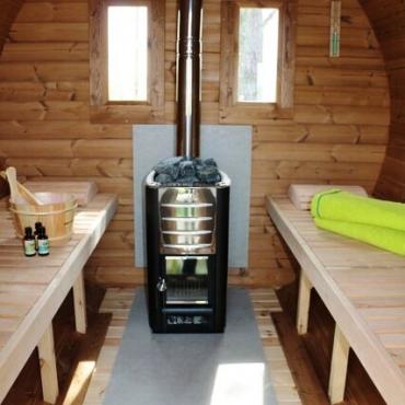 - Malkas krāsns Harvia M3 ( 16,5 kW) ar kurtuvi no iekšpuses, ar skursteni un akmeņiem;