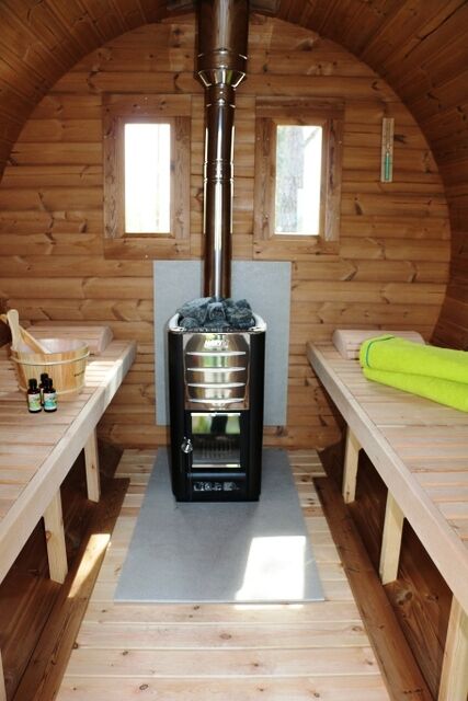 - Divi rūdītā stikla pakešu logi mucas priekšējā sienā vai aizmugures sienā;