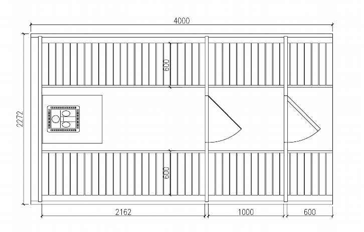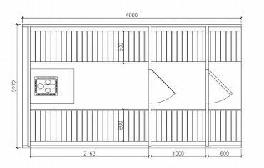 - Malkas krāsns Harvia M3 ( 16,5 kW) ar kurtuvi no iekšpuses, ar skursteni un akmeņiem;