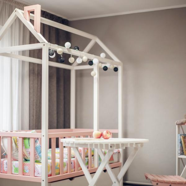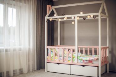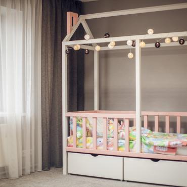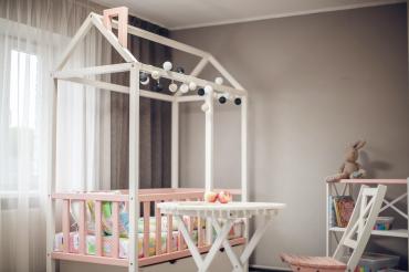 - Bērnu gulta ir izgatavota no priedes masīva, stabila un droša konstrukcija.
