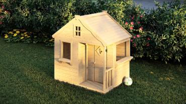 - Mājiņa ir pietiekoši reālistiska, tai ir īstas, atveramas durvis, logs.