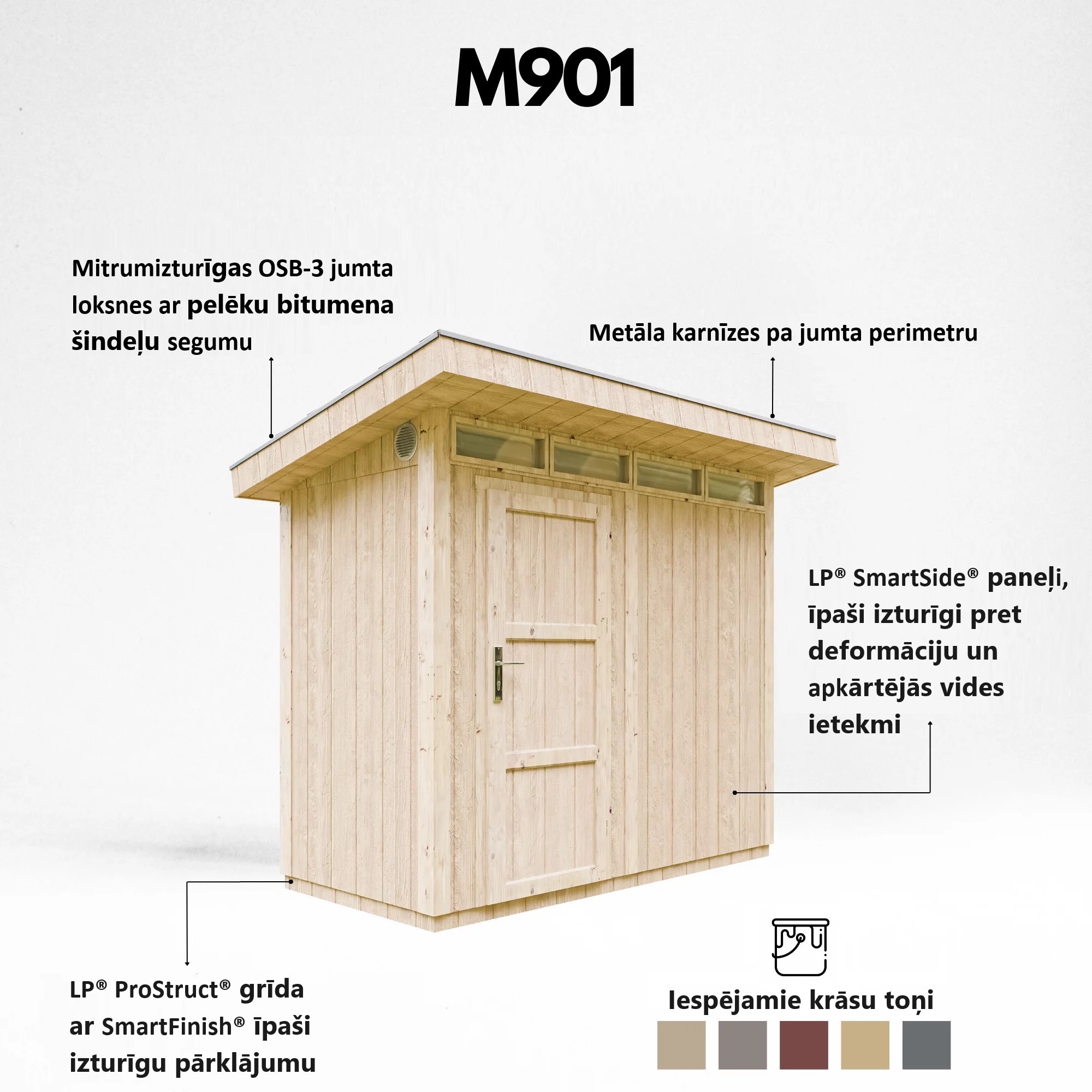 - Mājiņas pamatkomplektā iekļauta LP® ProStruct® grīda, kas tāpat izgatavota pēc SmartSide paneļu tehnoloģijas un ir īpaši izturīga pret ārējo ietekmi