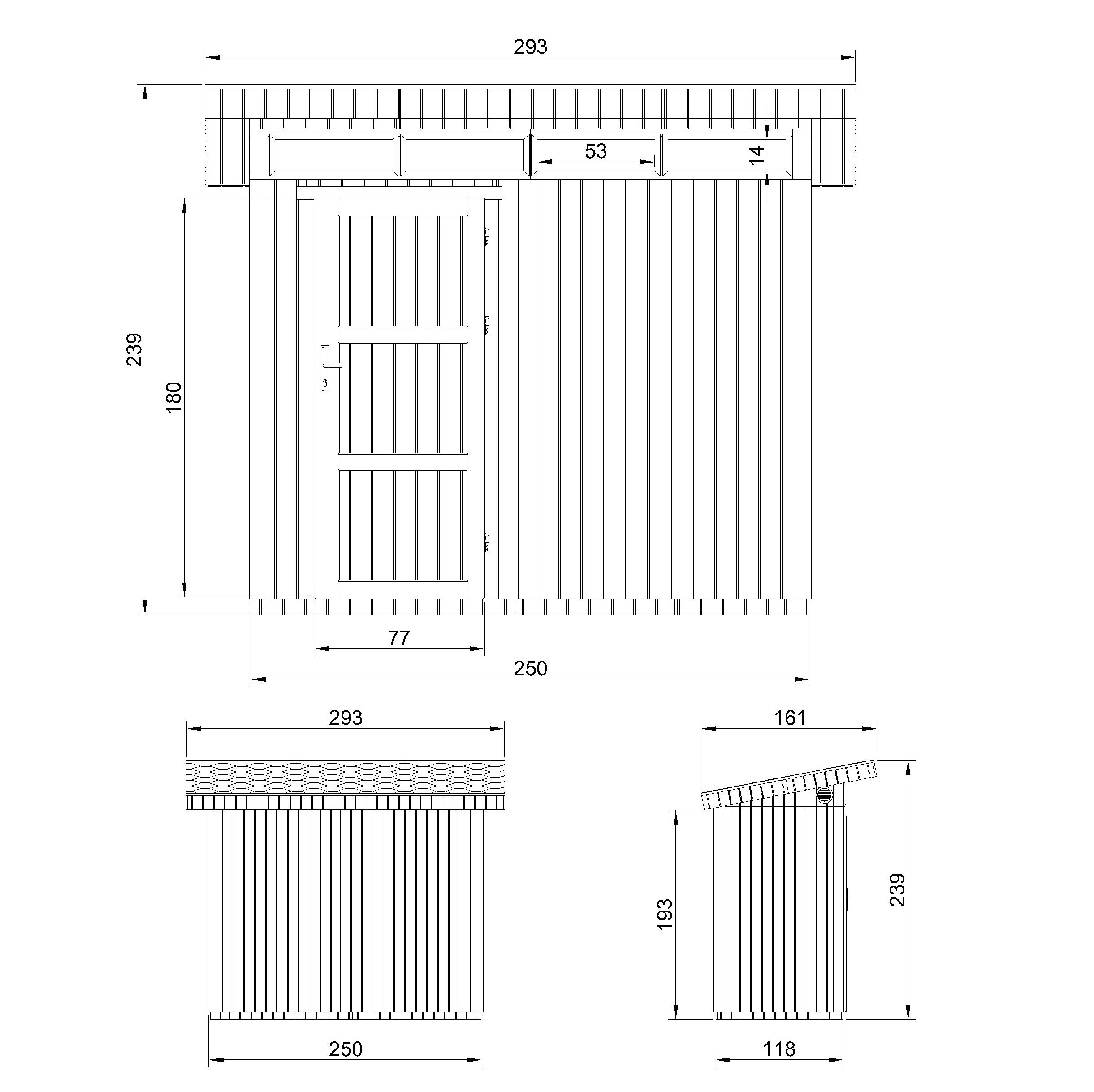 - Kopmplektā iekļauts bitumena šindeļu jumta segums pelēkā krāsā, kā arī metāla karnīzes pa jumta perimetru