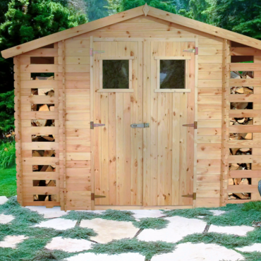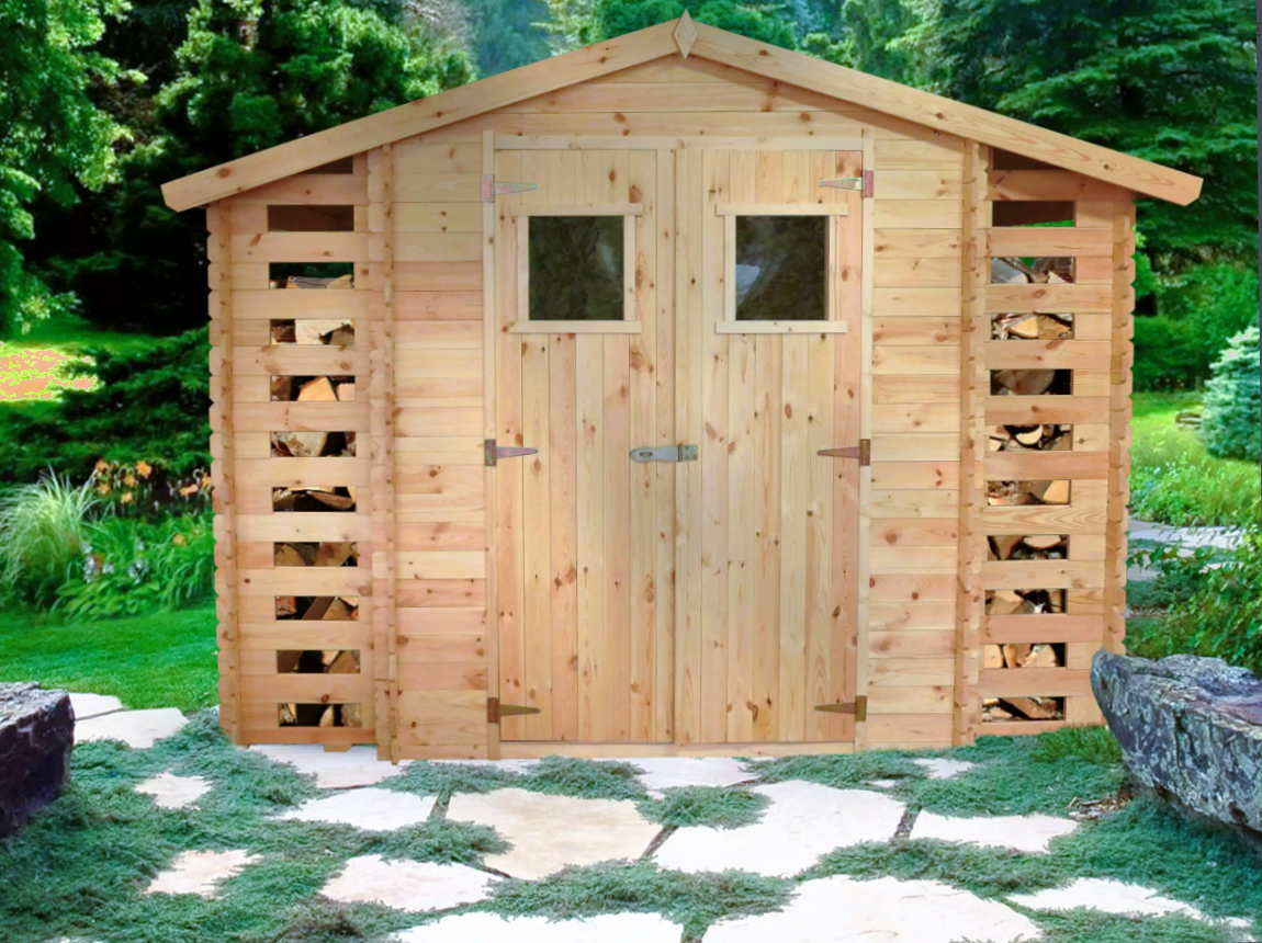 - Aizslēdzama dārza mājiņa ar malkas nojume.