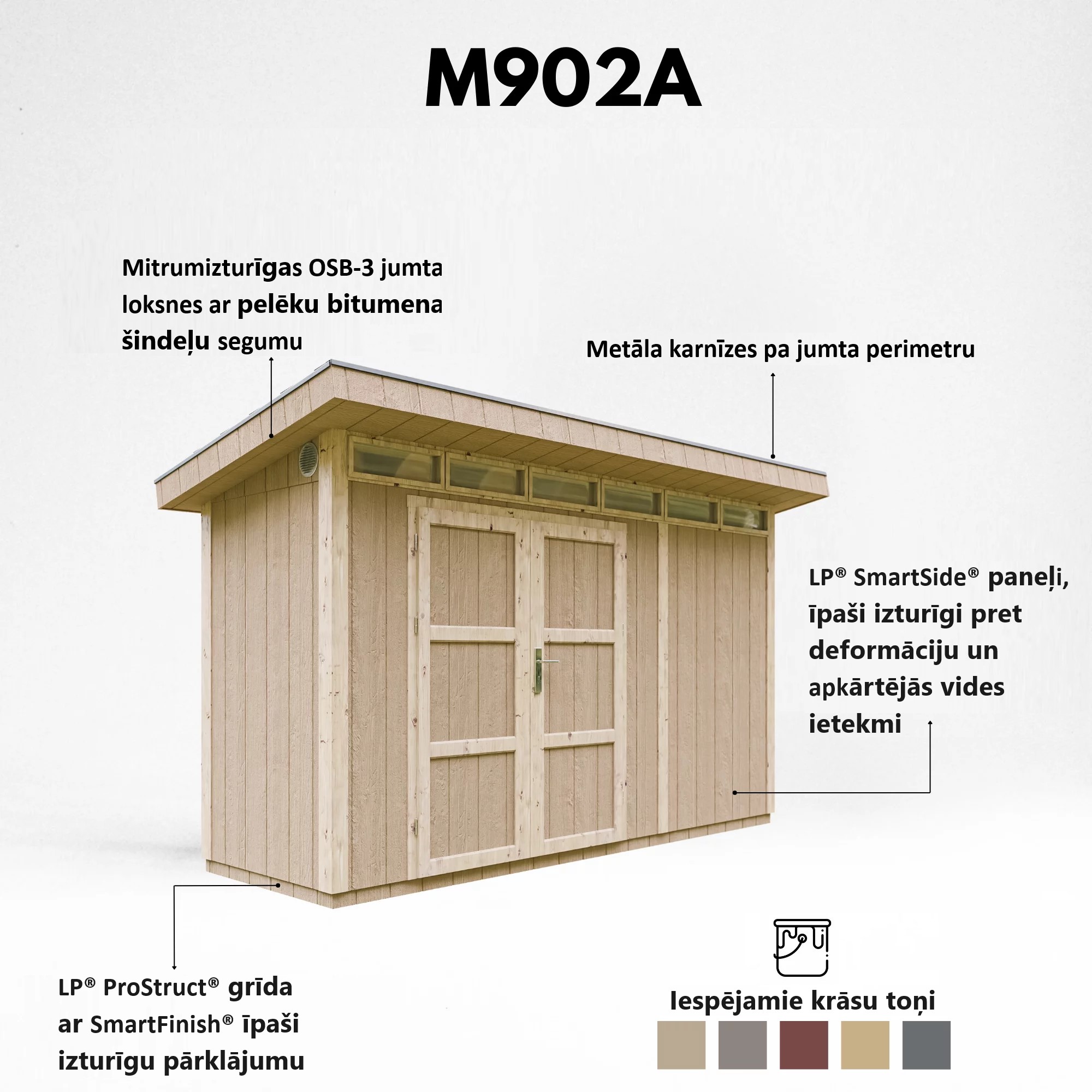 - Mājiņas pamatkomplektā iekļauta LP® ProStruct® grīda, kas tāpat izgatavota pēc SmartSide paneļu tehnoloģijas un ir īpaši izturīga pret ārējo ietekmi