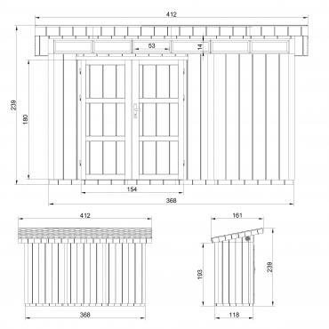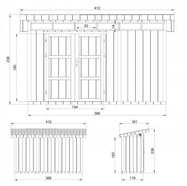 - Kopmplektā iekļauts bitumena šindeļu jumta segums pelēkā krāsā, kā arī metāla karnīzes pa jumta perimetru
