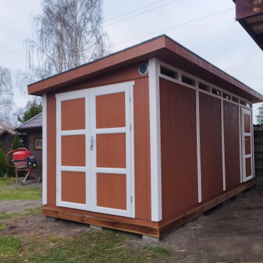 - Mājiņas paneļi un grīda jau ir rūpnieciski gruntēti un sagatavoti krāsošanai