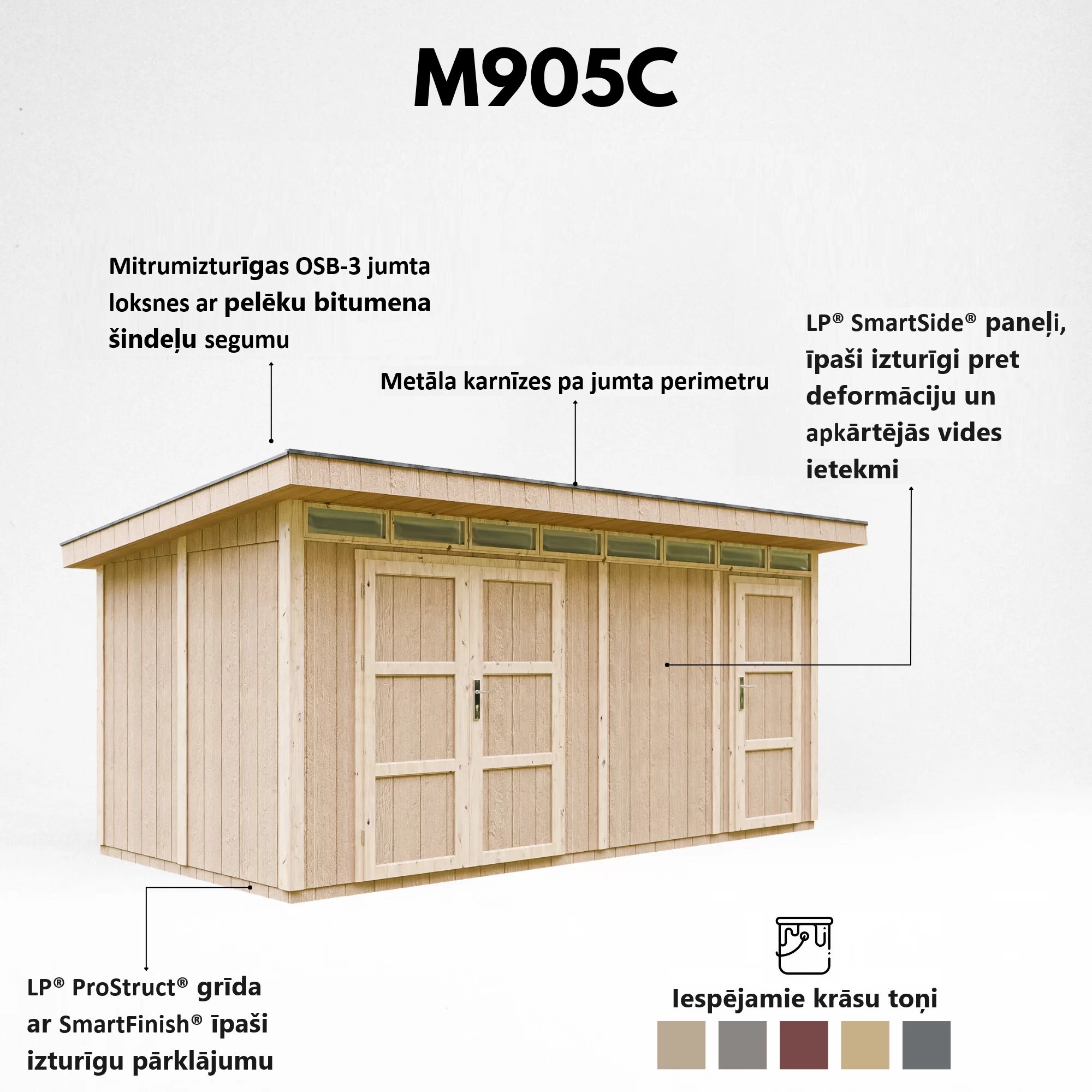 - Mājiņas pamatkomplektā iekļauta LP® ProStruct® grīda, kas tāpat izgatavota pēc SmartSide paneļu tehnoloģijas un ir īpaši izturīga pret ārējo ietekmi