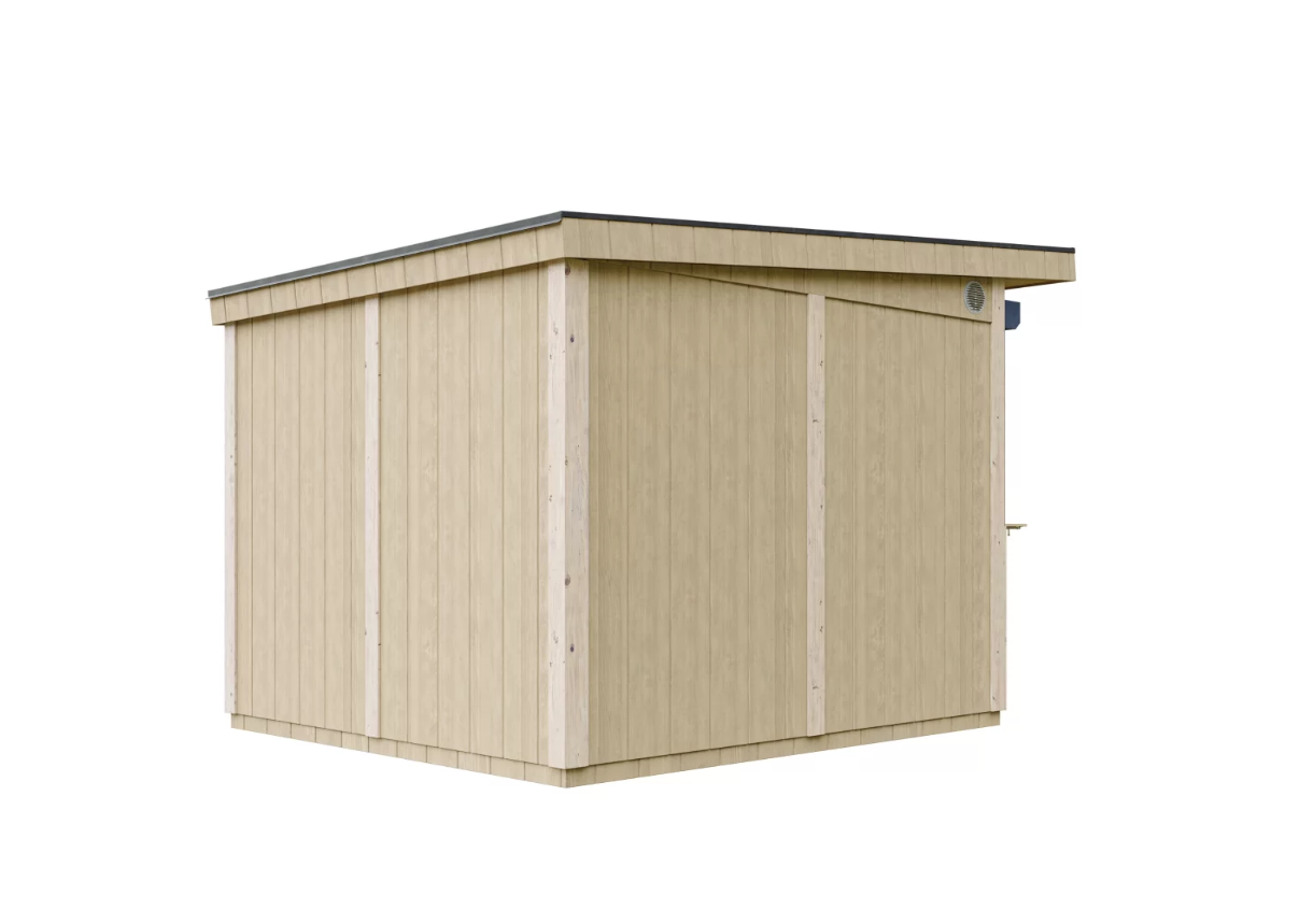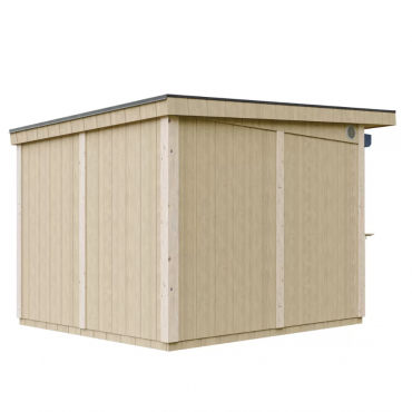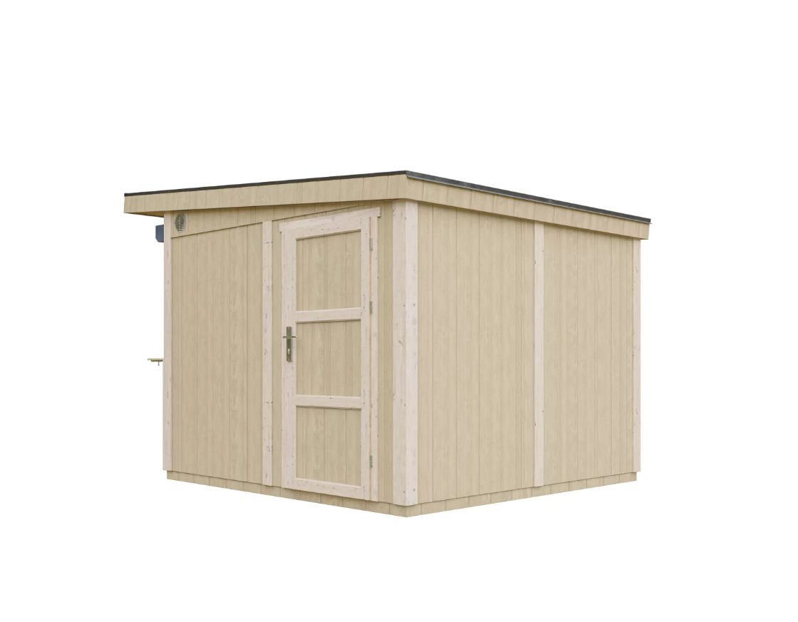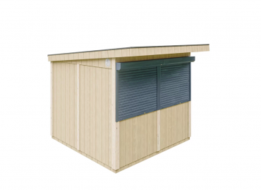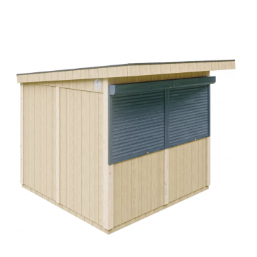 - Kiosks pamatkomplektā iekļauts LP® ProStruct® grīdas segums un pelēku bitumena dakstiņu jumta segumu. Pateicoties paneļu konstrukcijai, paneli ar durvīm var novietot vēlamajā vietā.