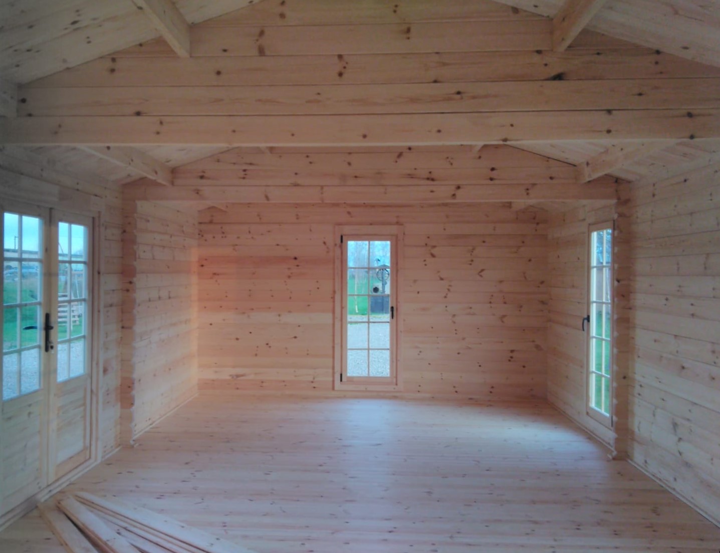 - Grīda no 19 mm spundētiem dēļiem, grīdlīstes;