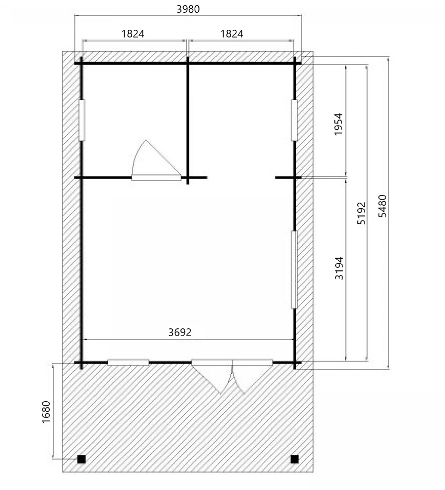 - Grīda no 19 mm spundētiem dēļiem, grīdlīstes;