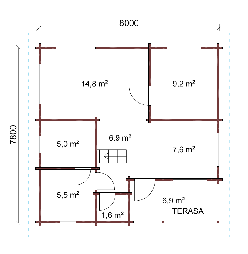 - Ārsienas un starpsienas no profilētām, frēzētām līmbrusām ar krusta stūra vai pilsētas stūra savienojumiem. Iespējamas starpsienas no koka karkasa materiāla;