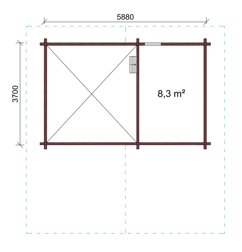 - Jumta konstrukcija – sijas, kopturi, spāres, latas, vēja dēļi, jumta vagondēļi, griestu vagondēļi. Jumts sagatavots siltinājuma materiāla iestrādei un jumta seguma uzklāšanai;
