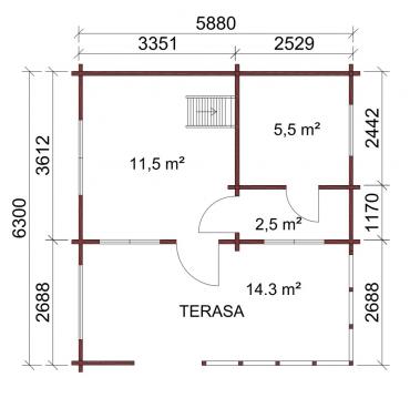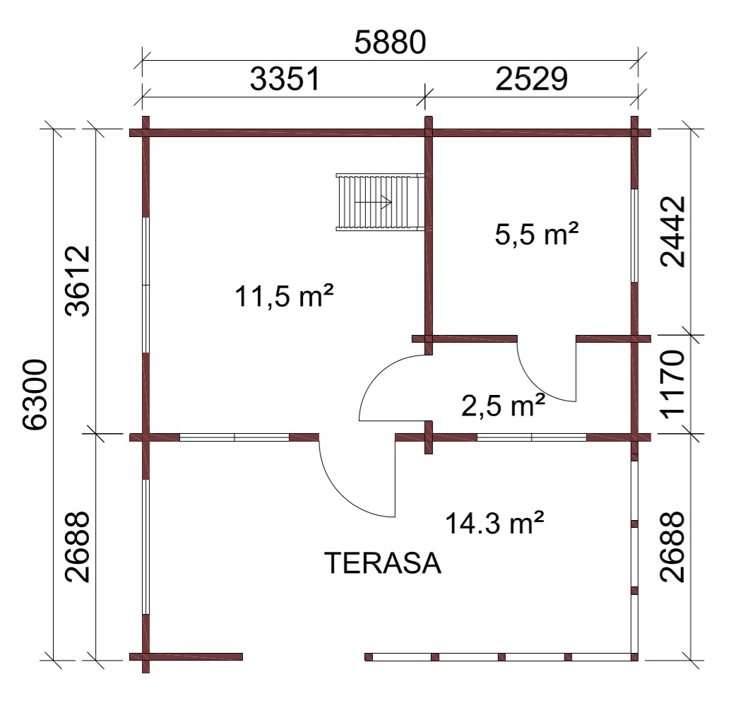 - Ārsienas un starpsienas no profilētām, frēzētām līmbrusām ar krusta stūra vai pilsētas stūra savienojumiem. Iespējamas starpsienas no koka karkasa materiāla;