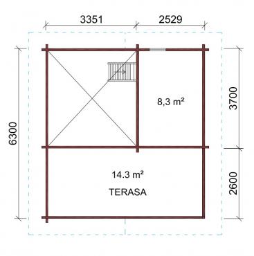 - Jumta konstrukcija – sijas, kopturi, spāres, latas, vēja dēļi, jumta vagondēļi, griestu vagondēļi. Jumts sagatavots siltinājuma materiāla iestrādei un jumta seguma uzklāšanai;