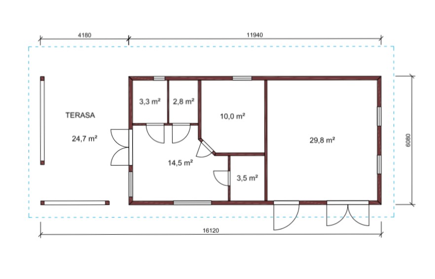 - Ārsienas un starpsienas no profilētām, frēzētām līmbrusām ar krusta stūra vai pilsētas stūra savienojumiem. Iespējamas starpsienas no koka karkasa materiāla;