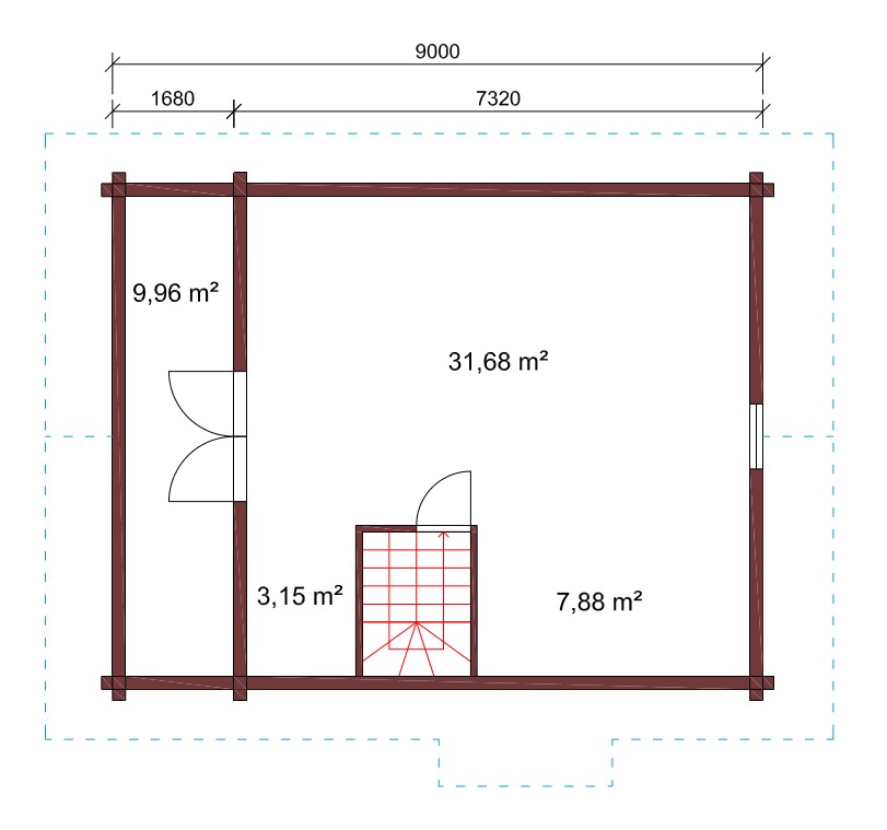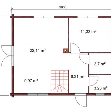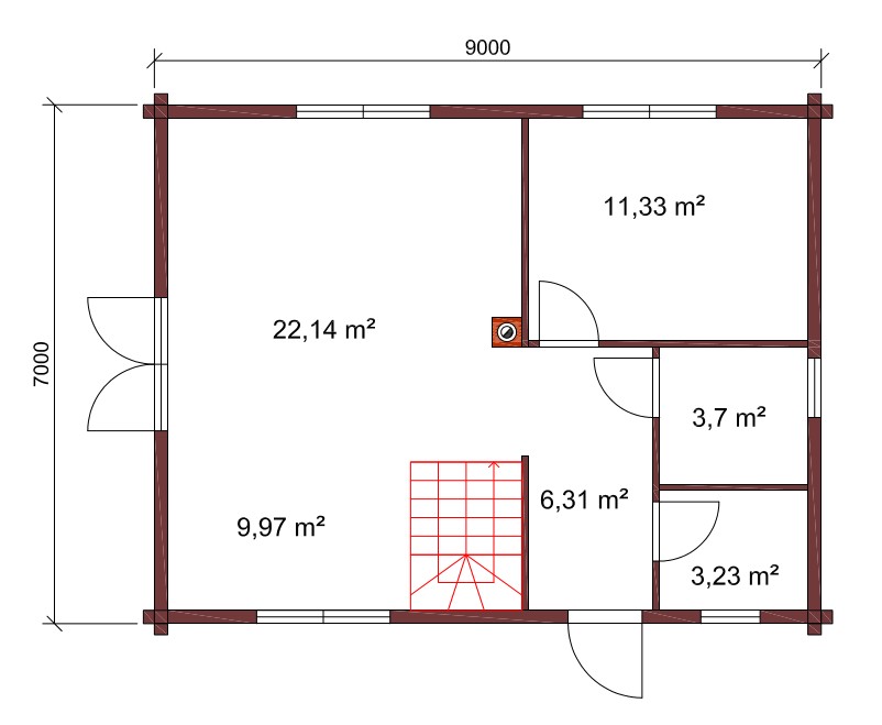 - Ārsienas un starpsienas no profilētām, frēzētām līmbrusām ar krusta stūra vai pilsētas stūra savienojumiem. Iespējamas starpsienas no koka karkasa materiāla;