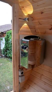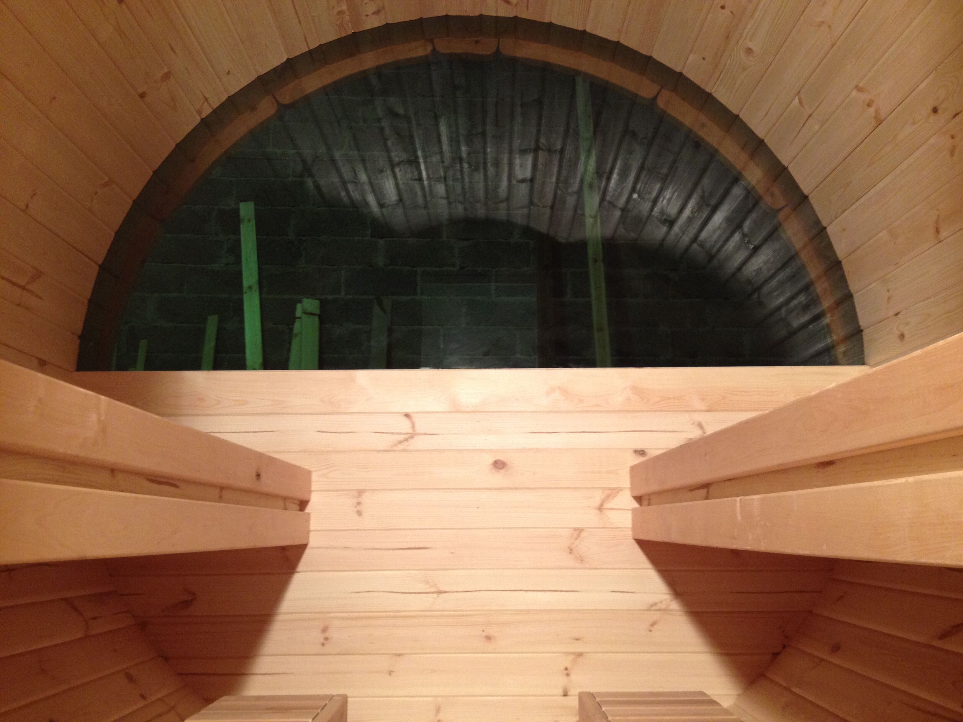 - В парилке панорамное окно на половину стены из тонированного закаленного стекла;