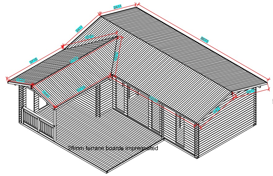 - Пропитанная террасная доска толщиной 28 мм и перила для террасы;