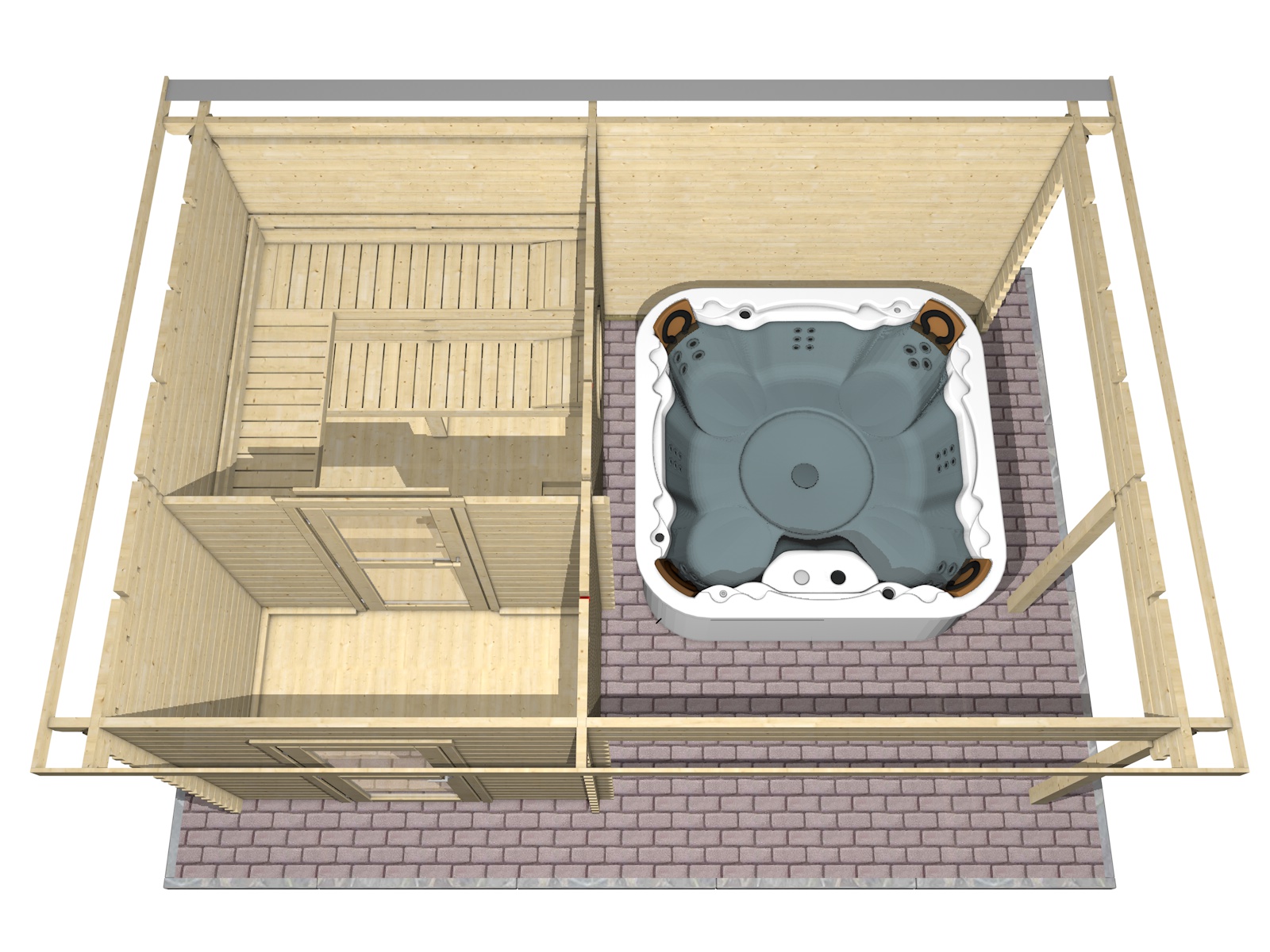- Двери парилки из клееного дерева с закаленным стеклом;