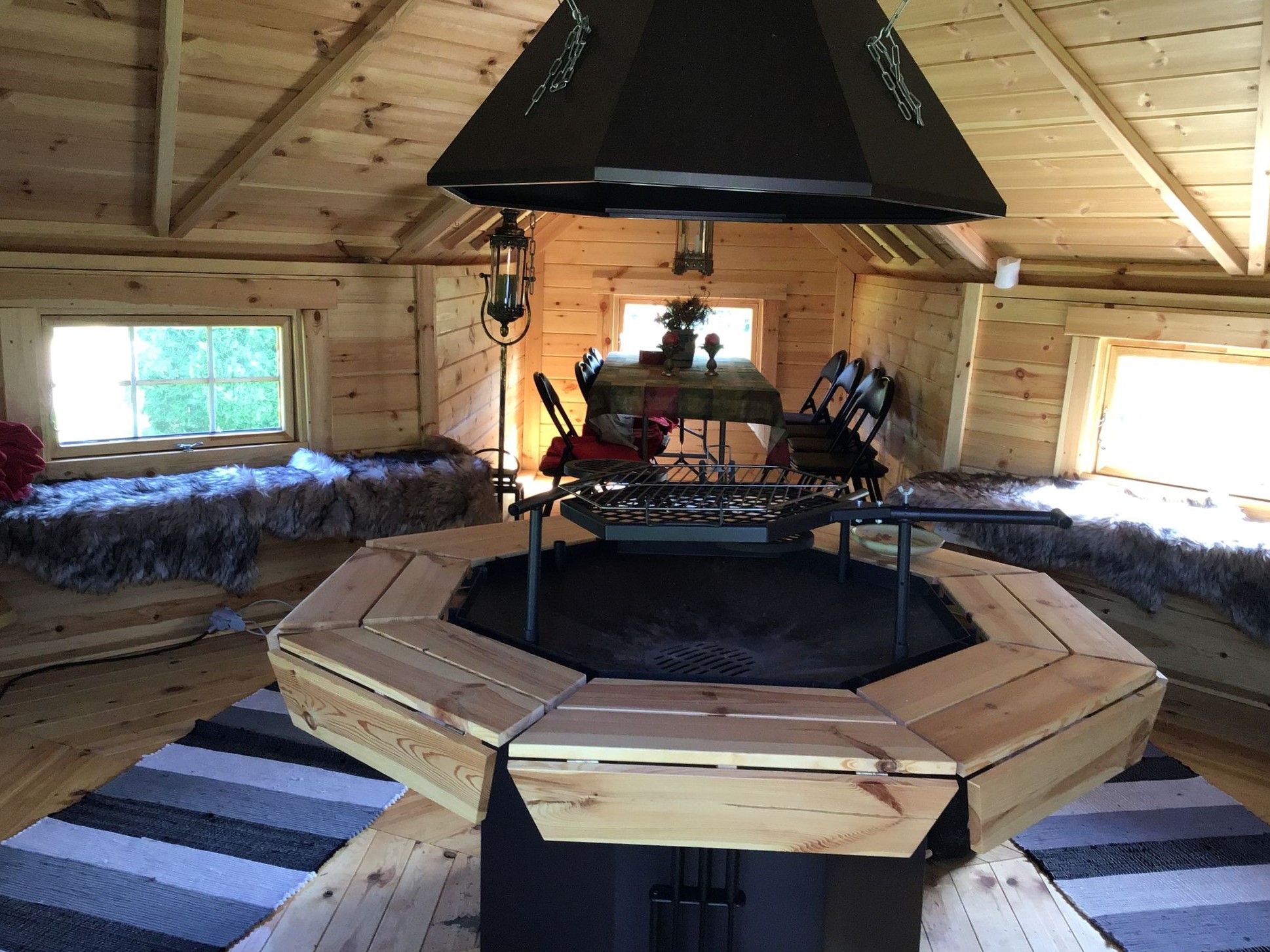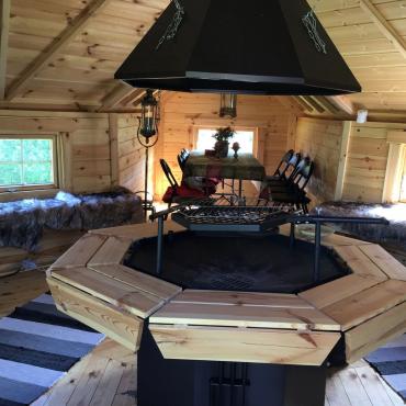 - BBQ grils melnā krāsā ar piestiptinātu koka galdu;