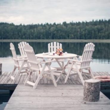 - Круглый раскладной стол + 6 раскладных стульев с подлокотниками и регулируемой спинкой.