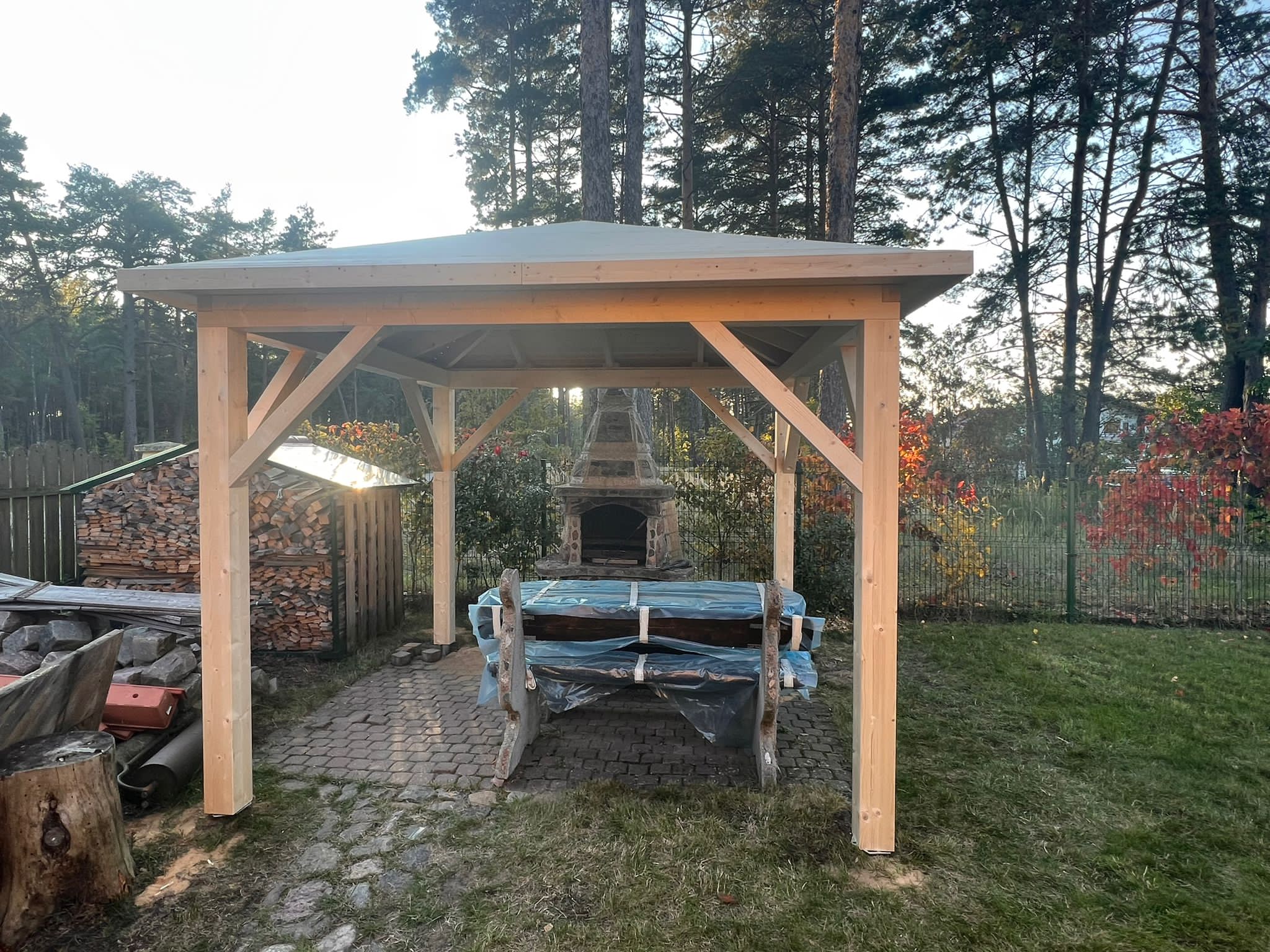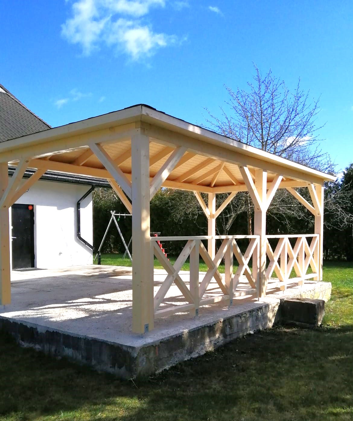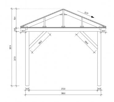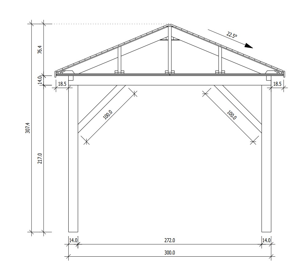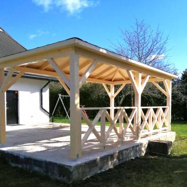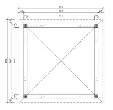 - Опорные столбы 90mm x 90mm из клееного бруса ( 4 шт., 6 шт. или 8 шт.);