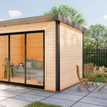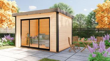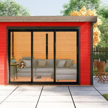 Dārza māja, dārza birojs, vasarnīca, lapene, oranžērija – mūsu jaunā moderno mājiņu sērija ar visplašāko pielietojumu ! Šī gaisīgā telpa ar atbīdāmām stikla sienām ļaus baudīt saules siltumu un vasaras burvīgās smaržas nepieceļoties no sava iemīļotā atpūtas krēsla, vai dīvāna. Tomēr, vēsākos laika apstākļos durvis ir ērti aizbīdāmas, norobežojot no vējiem un aukstuma, bet saglabājot brīnišķīgos skatus uz Jūsu dārzu un apārtni!
