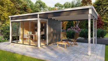 Dārza māja, dārza birojs, vasarnīca, lapene, oranžērija – mūsu jaunā moderno mājiņu sērija ar visplašāko pielietojumu ! Šī gaisīgā telpa ar atbīdāmām stikla sienām ļaus baudīt saules siltumu un vasaras burvīgās smaržas nepieceļoties no sava iemīļotā atpūtas krēsla, vai dīvāna. Tomēr, vēsākos laika apstākļos durvis ir ērti aizbīdāmas, norobežojot no vējiem un aukstuma, bet saglabājot brīnišķīgos skatus uz Jūsu dārzu un apārtni!