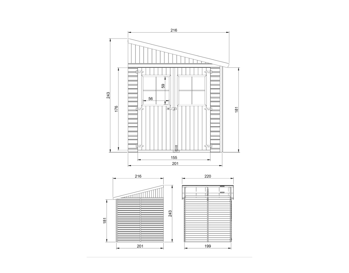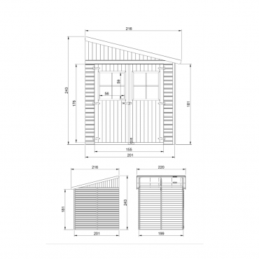 - Размер в собранном виде:H243x216x220cm