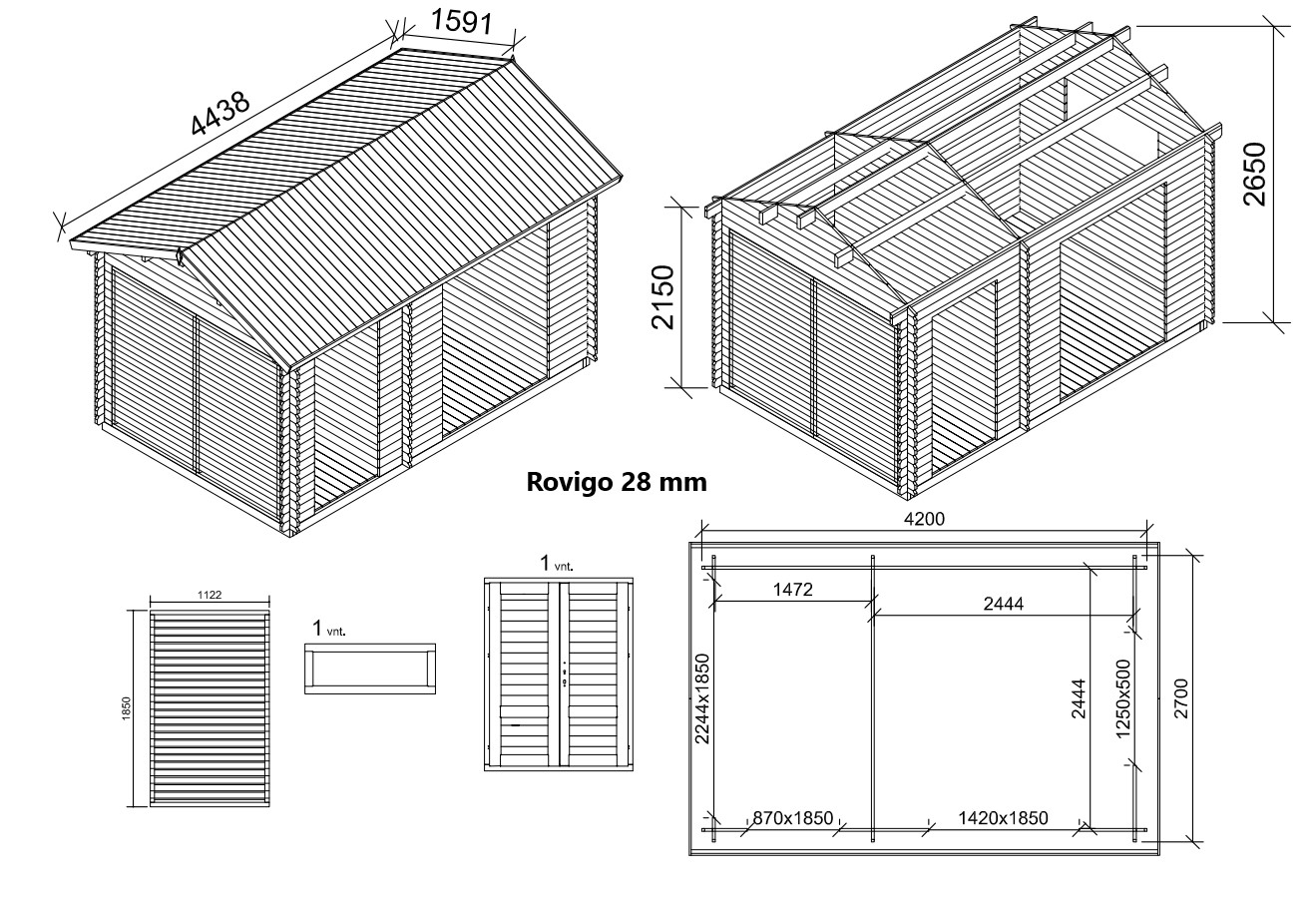 • Jumts no 19 mm spundētiem dēļiem, vēja dēļi;
