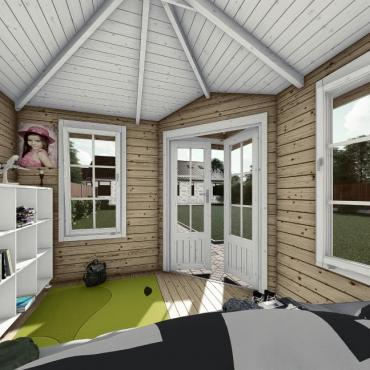 • Grīda no 19 mm dēļiem, grīdlīstes;