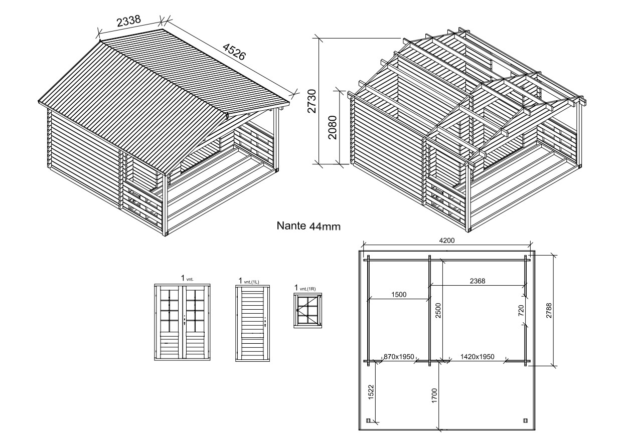 - Durvis un logi ar pilnu furnitūras komplektu;
