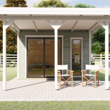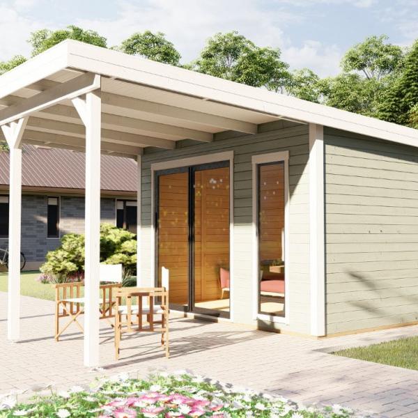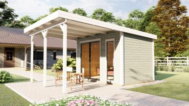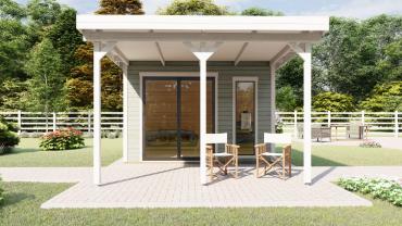 Dārza māja, dārza birojs, vasarnīca, lapene, oranžērija – mūsu jaunā moderno mājiņu sērija ar visplašāko pielietojumu ! Šī gaisīgā telpa ar atbīdāmām stikla sienām ļaus baudīt saules siltumu un vasaras burvīgās smaržas nepieceļoties no sava iemīļotā atpūtas krēsla, vai dīvāna. Tomēr, vēsākos laika apstākļos durvis ir ērti aizbīdāmas, norobežojot no vējiem un aukstuma, bet saglabājot brīnišķīgos skatus uz Jūsu dārzu un apārtni!