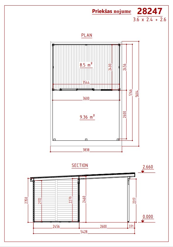 5.15 x 3.60 kopā ar nojumi