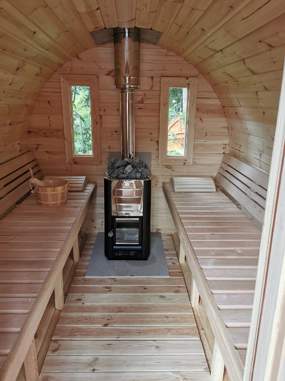 - Malkas krāsns Harvia Pro 20 ( 24,1 kW) ar kurtuvi no iekšpuses, ar skursteni un akmeņiem;