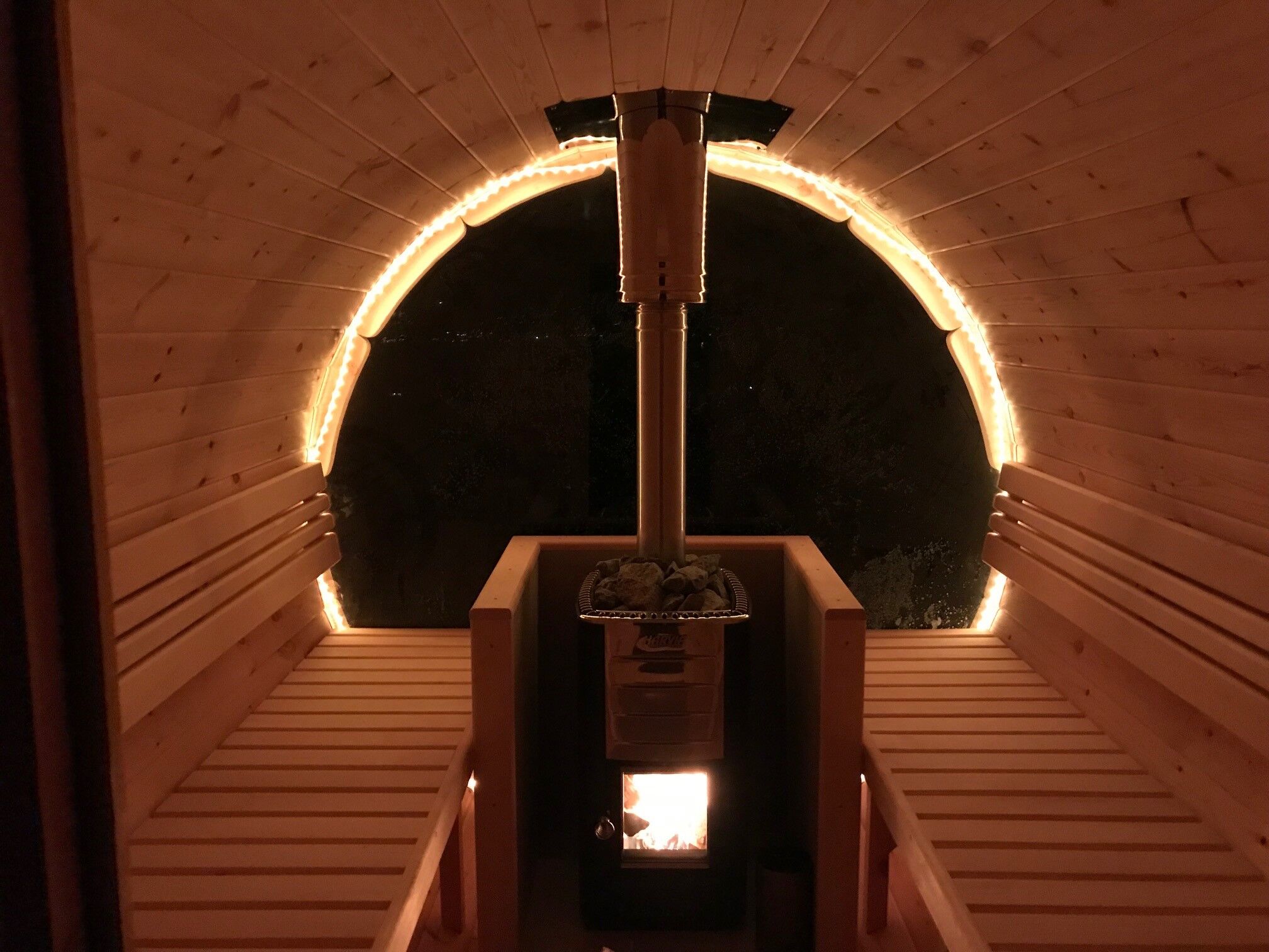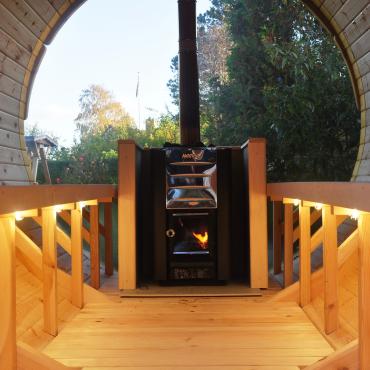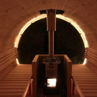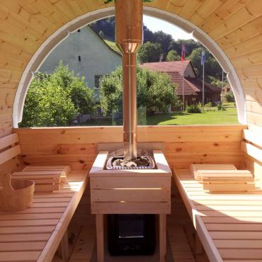 - Divi rūdītā stikla pakešu logi mucas priekšējā sienā vai aizmugures sienā;