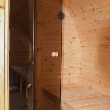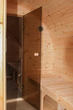 - Atpūtas telpa ar 2 soliem un tonēta rūdīta stikla durvīm uz pērtuvi;