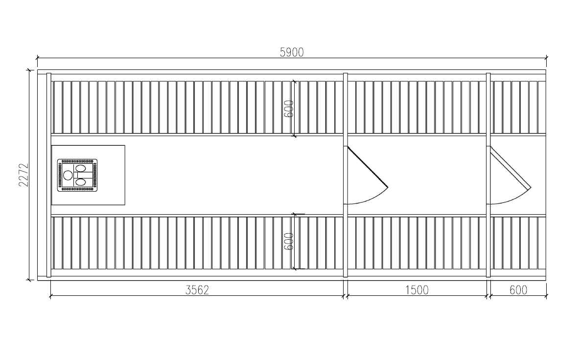 - Terases garums: 0.6 m ( terases vietā var izvēlēties pagarināt atpūtas telpu vai pērtuvi par 0.6 m bez papildus samaksas )