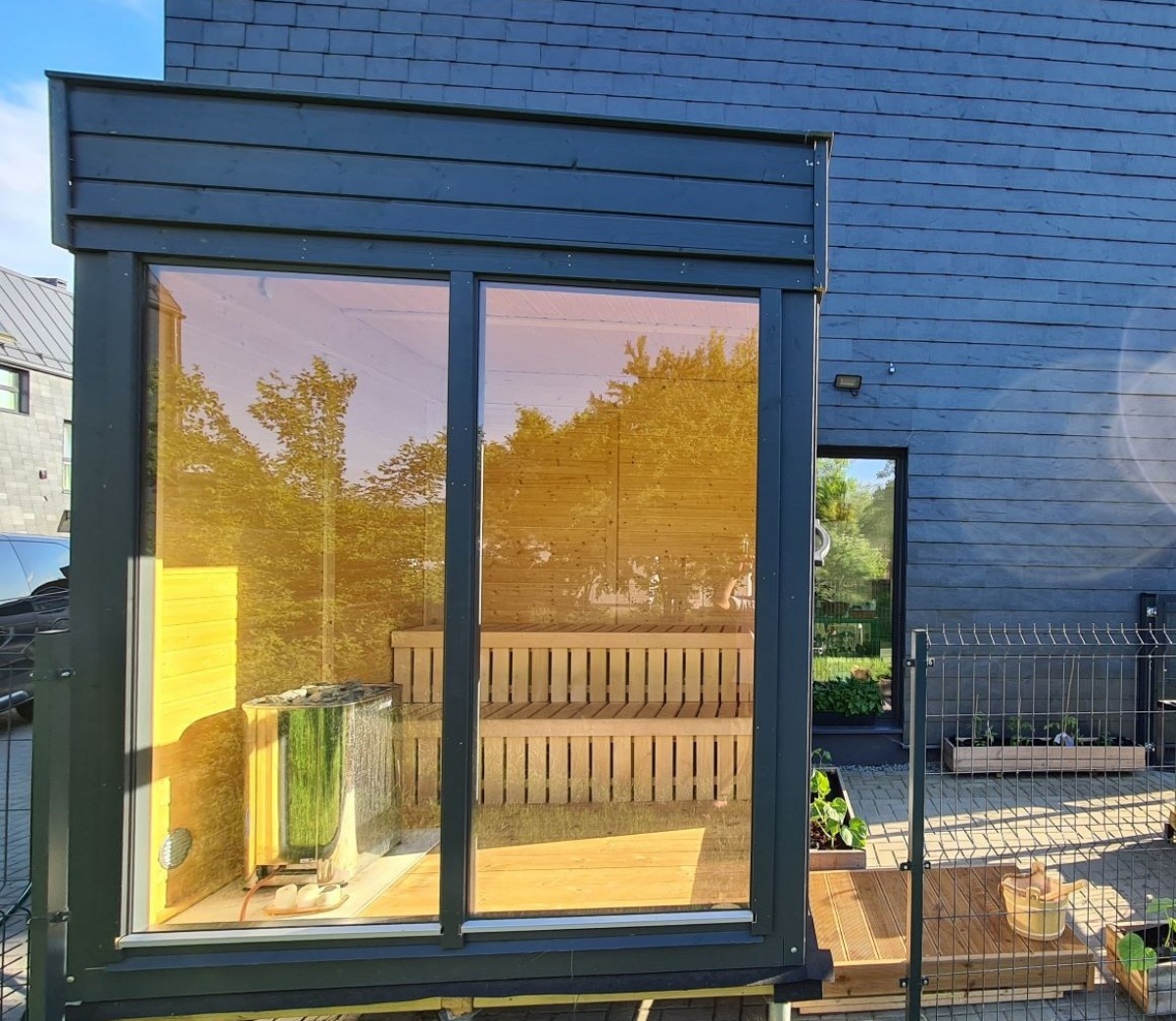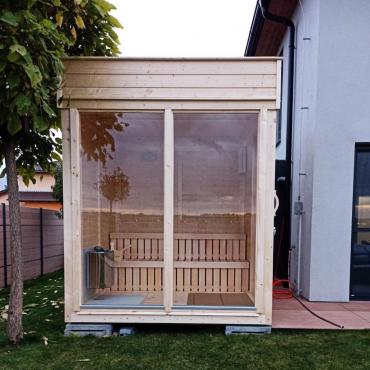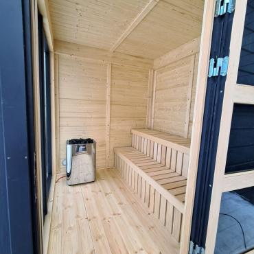 Piedāvājam mūsu jauno āra pirts moduļu sēriju, kas apvieno modernu dizainu un īpašu funkcionalitāti. Šie modernie pirts moduļi izskatās tikpat labi gan no iekšpuses, kā no ārpuses, apvienojot komfortu un mūsdienīgumu, tajā pašā laikā saglabājot mūsu pirts tradīcijas un ekoloģiju, jo šīs pirtis ir veidotas tikai no koka kombinācijā ar augstākās kvalitātes papildmateriāliem. Moduļi jau standarta komplektācijā tiek piedāvāti ar siltinātām sienām un jumtu. No ārpuses saunas apdarē izmantoti 18mm priedes vagondēļi, bet iekšpusē apdare veikta ar 12mm priedes vagondēļiem. Pamatkomplektācijā ietilpst augstākās kvalitātes apses, vai melnalkšņa lāvas soli ar atzveltnēm !