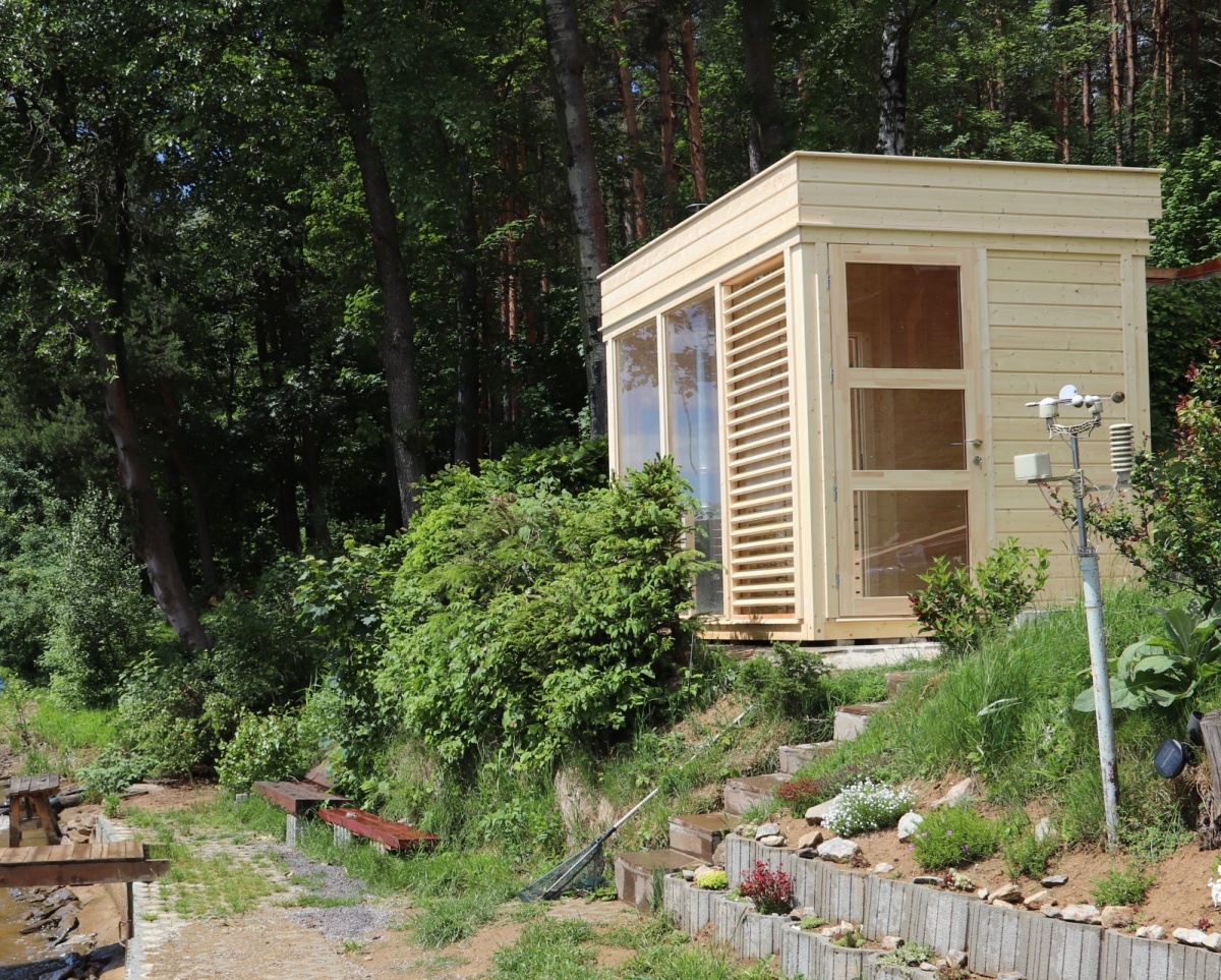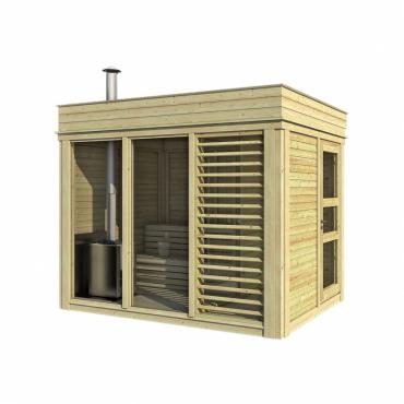 Piedāvājam mūsu jauno āra pirts moduļu sēriju, kas apvieno modernu dizainu un īpašu funkcionalitāti. Šie modernie pirts moduļi izskatās tikpat labi gan no iekšpuses, kā no ārpuses, apvienojot komfortu un mūsdienīgumu, tajā pašā laikā saglabājot mūsu pirts tradīcijas un ekoloģiju, jo šīs pirtis ir veidotas tikai no koka kombinācijā ar augstākās kvalitātes papildmateriāliem. Moduļi jau standarta komplektācijā tiek piedāvāti ar siltinātām sienām un jumtu. No ārpuses saunas apdarē izmantoti 18mm priedes vagondēļi, bet iekšpusē apdare veikta ar 12mm priedes vagondēļiem. Pamatkomplektācijā ietilpst augstākās kvalitātes apses, vai melnalkšņa lāvas soli ar atzveltnēm !