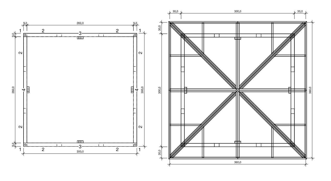 • Jumta atbalsta sijas 90mm x 90mm ( 8 gab.);